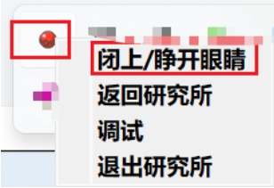 点击右下角的贵重球的图标,然后右键打开菜单,点击“闭上/睁开眼睛”就可以隐藏桌面上的宝可梦啦!